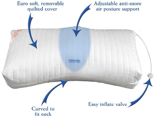 - Adjustable anti-snore air chamber positions your head and neck to help prevent snoring via an easy to use inflate valve